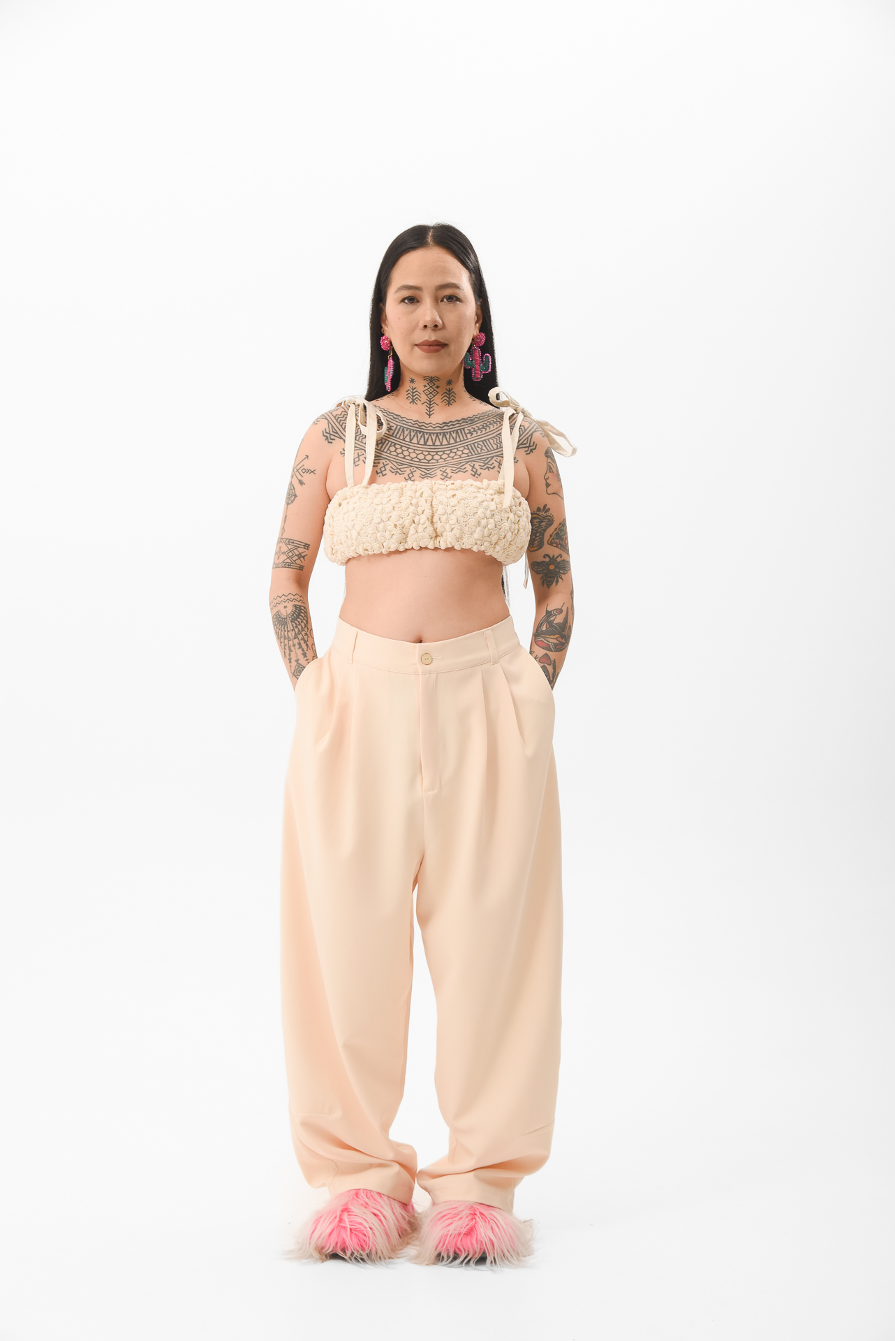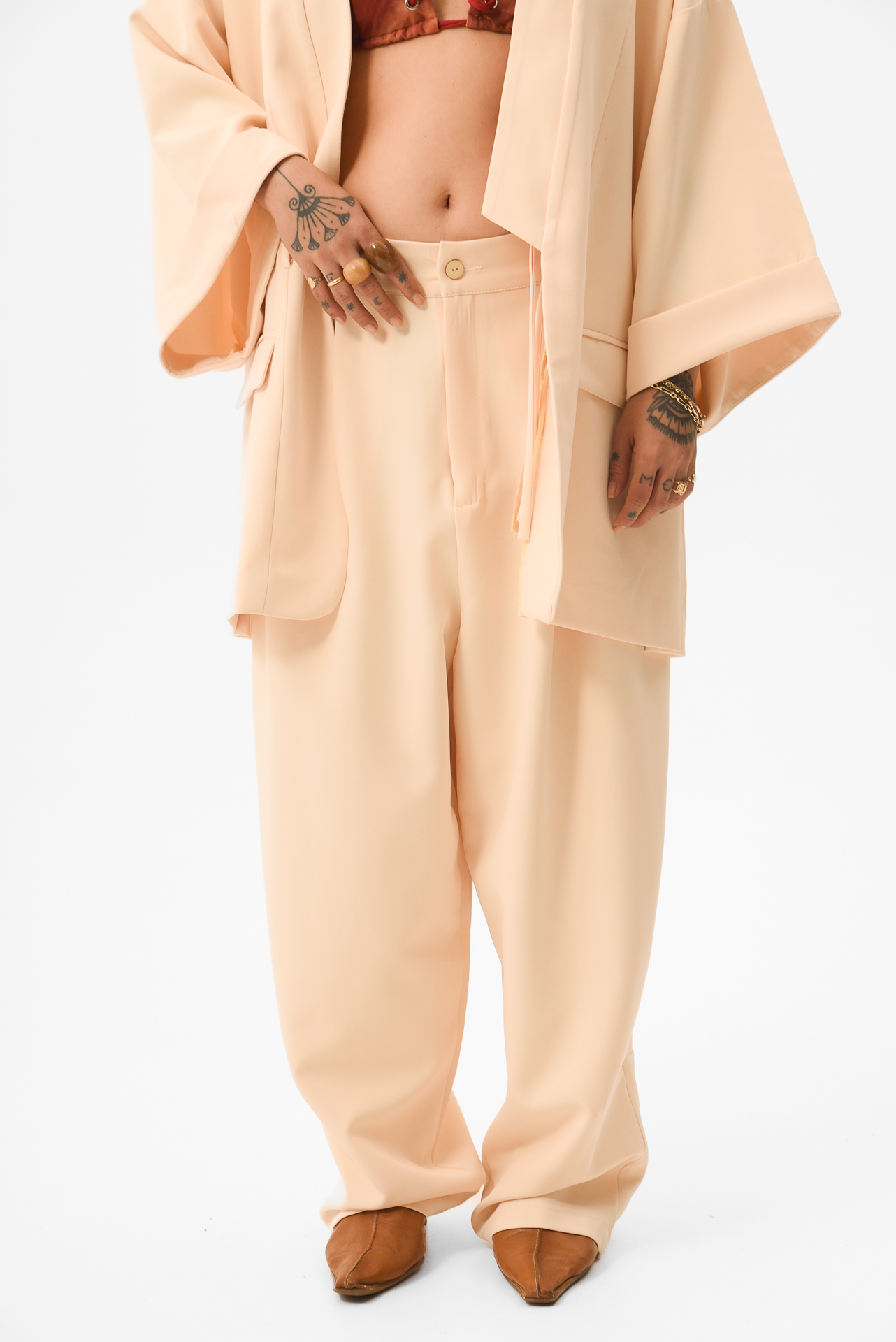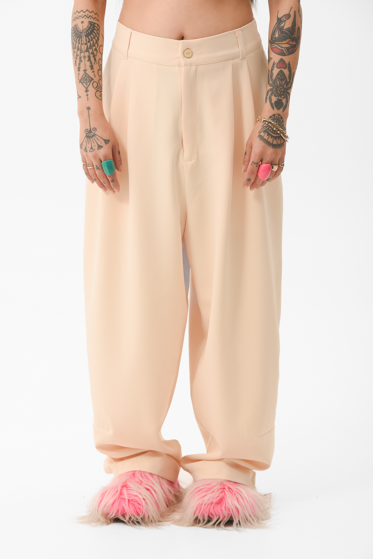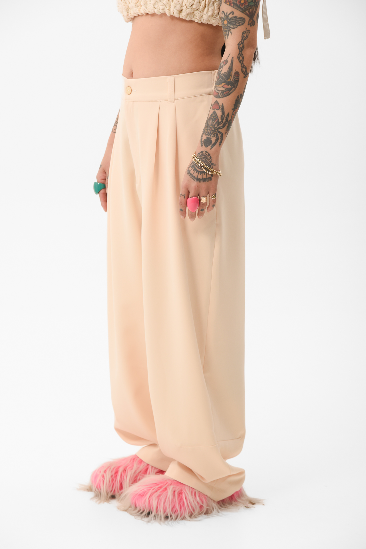 The Arabella Pants (Light Yellow) draw from a long lineage, pleated trousers that have moved through decades, from early tailoring to the silhouettes of the 30s, the ease of old cinema, and the boldness of 80s power dressing.