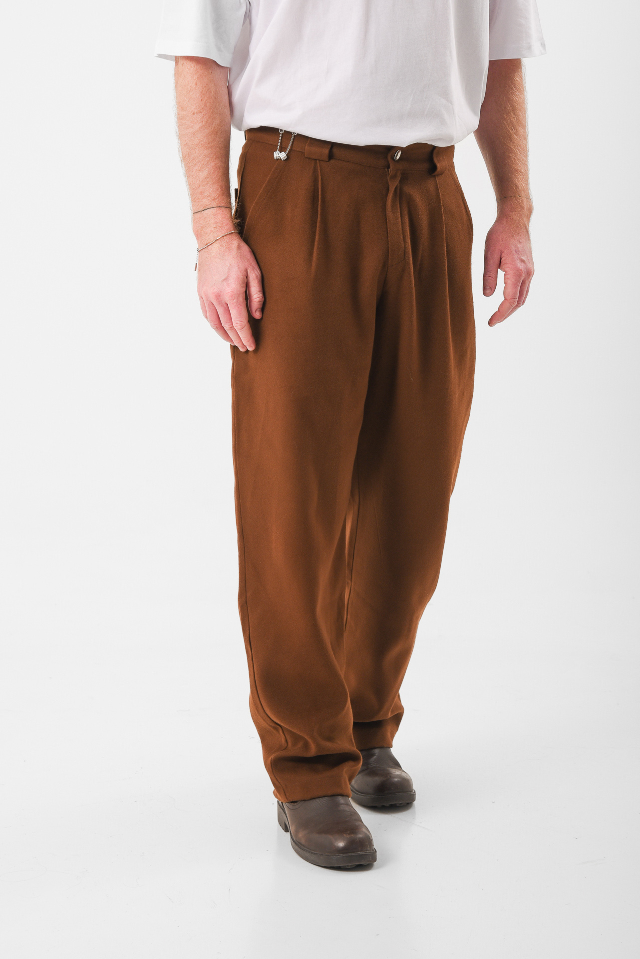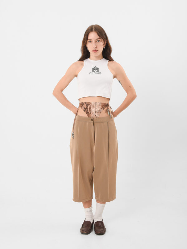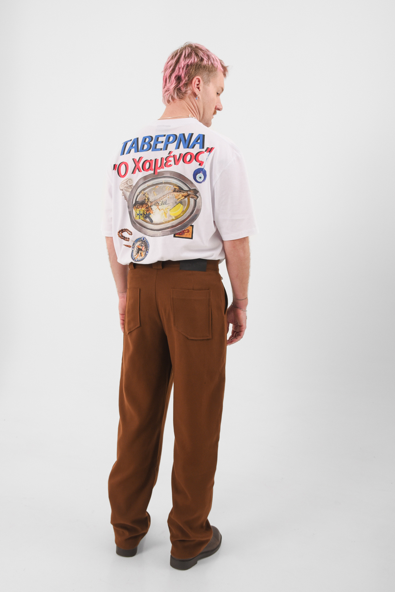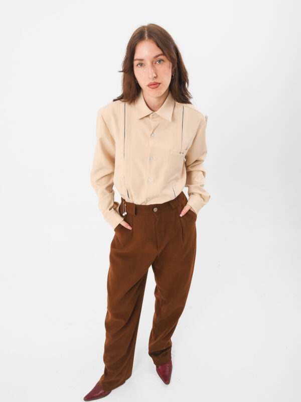 Western grit meets quiet luxury. The Desert Law Pants are tailored with structure and intention, crafted from a soft suede-textured fabric that moves like sand under sun. A modern take on the cowboy silhouette, strong lines, grounded color, and a fit that carries confidence without shouting. Made in Greece from reclaimed materials, these pants balance edge and ease — built for wandering souls and soft-hearted outlaws alike. 🤎
