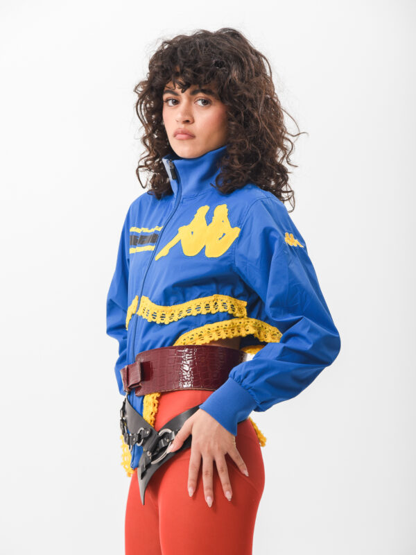 Made in Greece from reworked materials, this piece redefines power dressing through tenderness, a reminder that elegance doesn’t need to shout; it can whisper in silk.