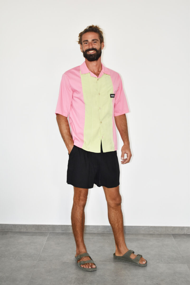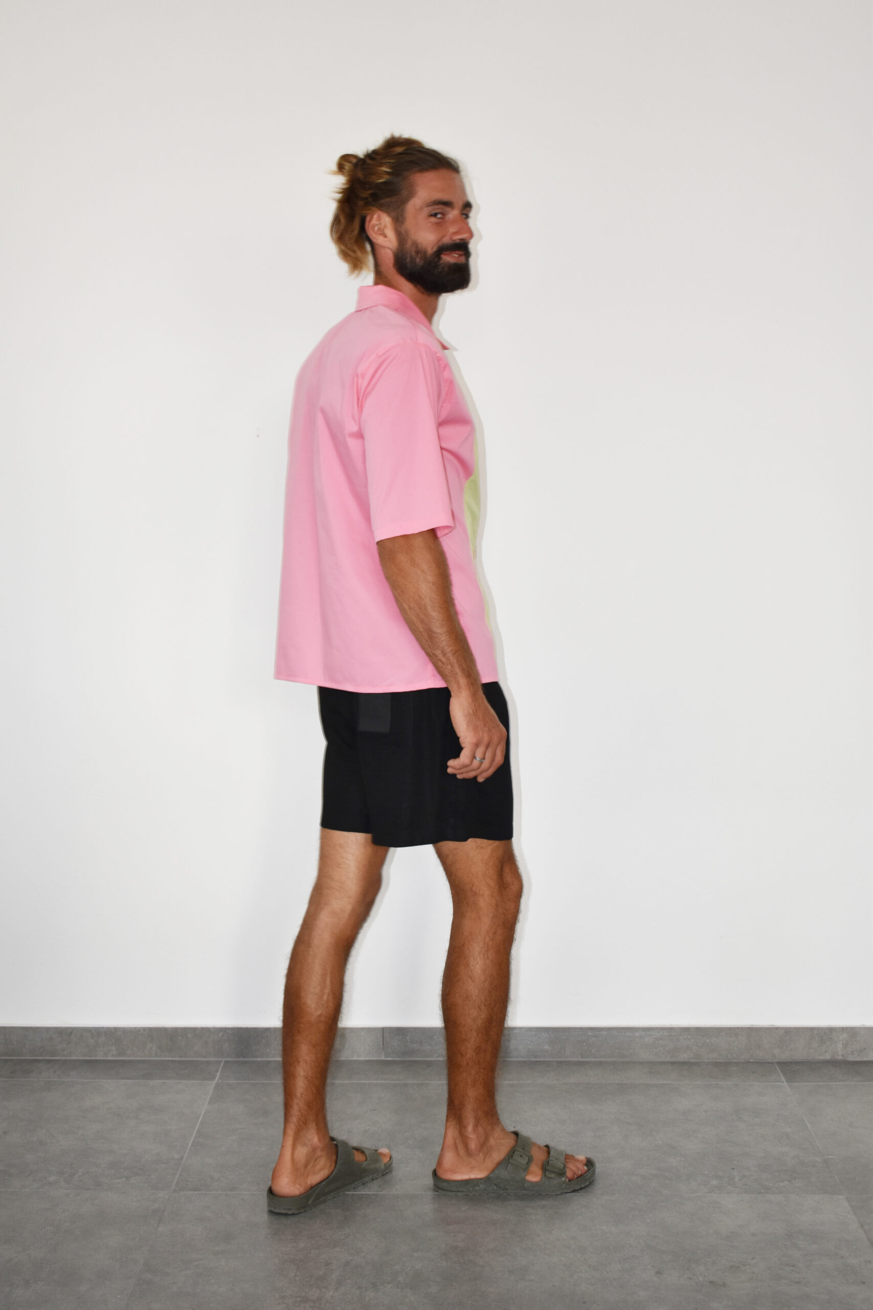 Straight out of a 50s daydream. The Milkshake Diner Shirt mixes soft pink and minty light green in a color combo that feels like jukebox songs and neon signs. With a retro cut and upcycled fabric, it’s a playful nod to soda-fountain style, made for modern rebels. Wear it buttoned, open, or tied at the waist, it’s nostalgia you can style your way.