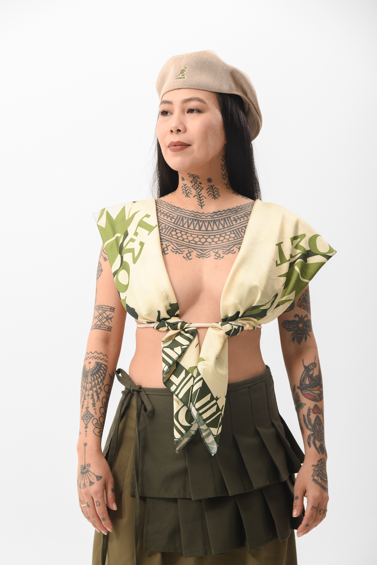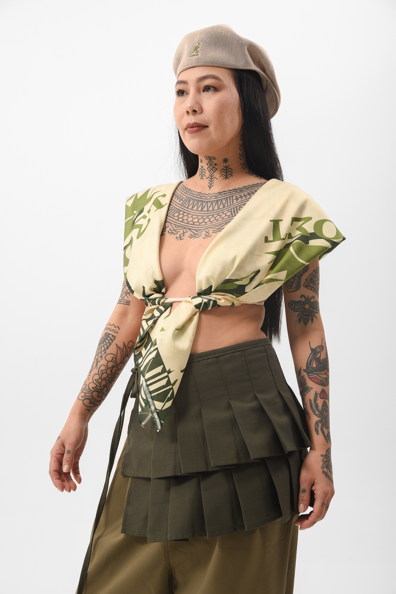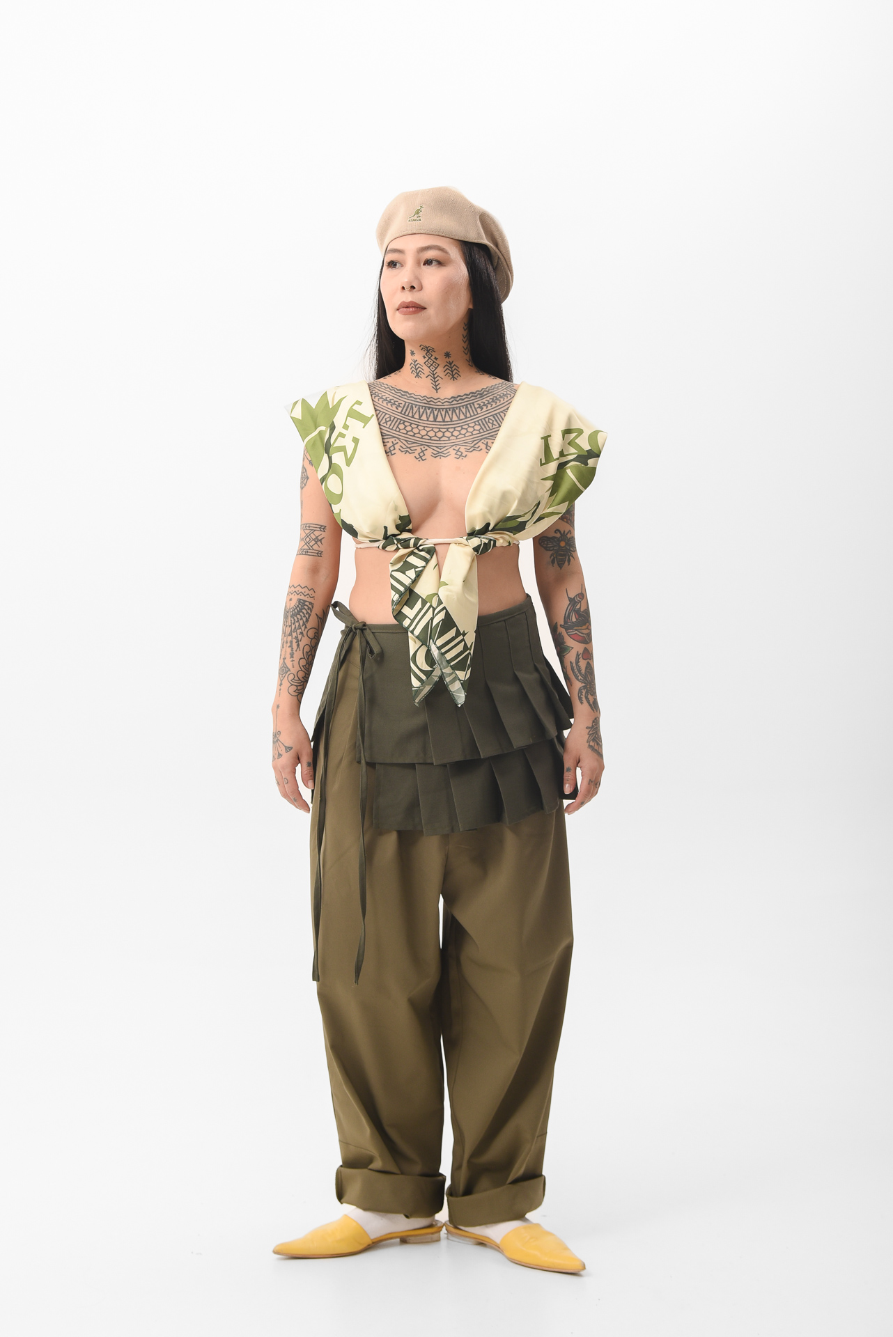 The Pleat Over You Belt Skirt wraps around the body in two flowing layers of khaki pleats, structured, yet light. Designed to sit over the Arabella Pants, it creates a silhouette that feels styled without trying.