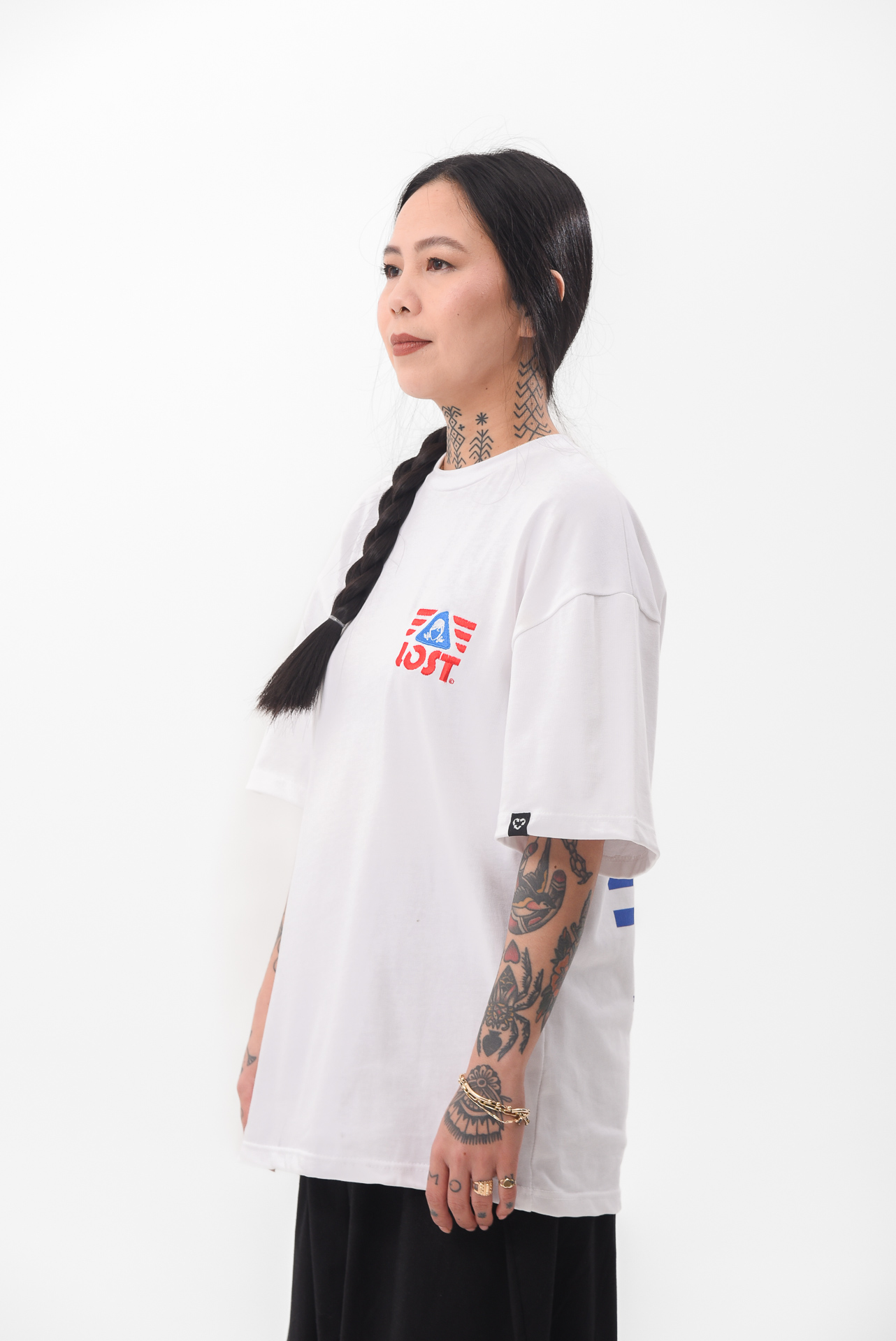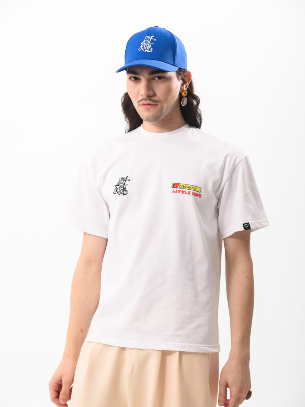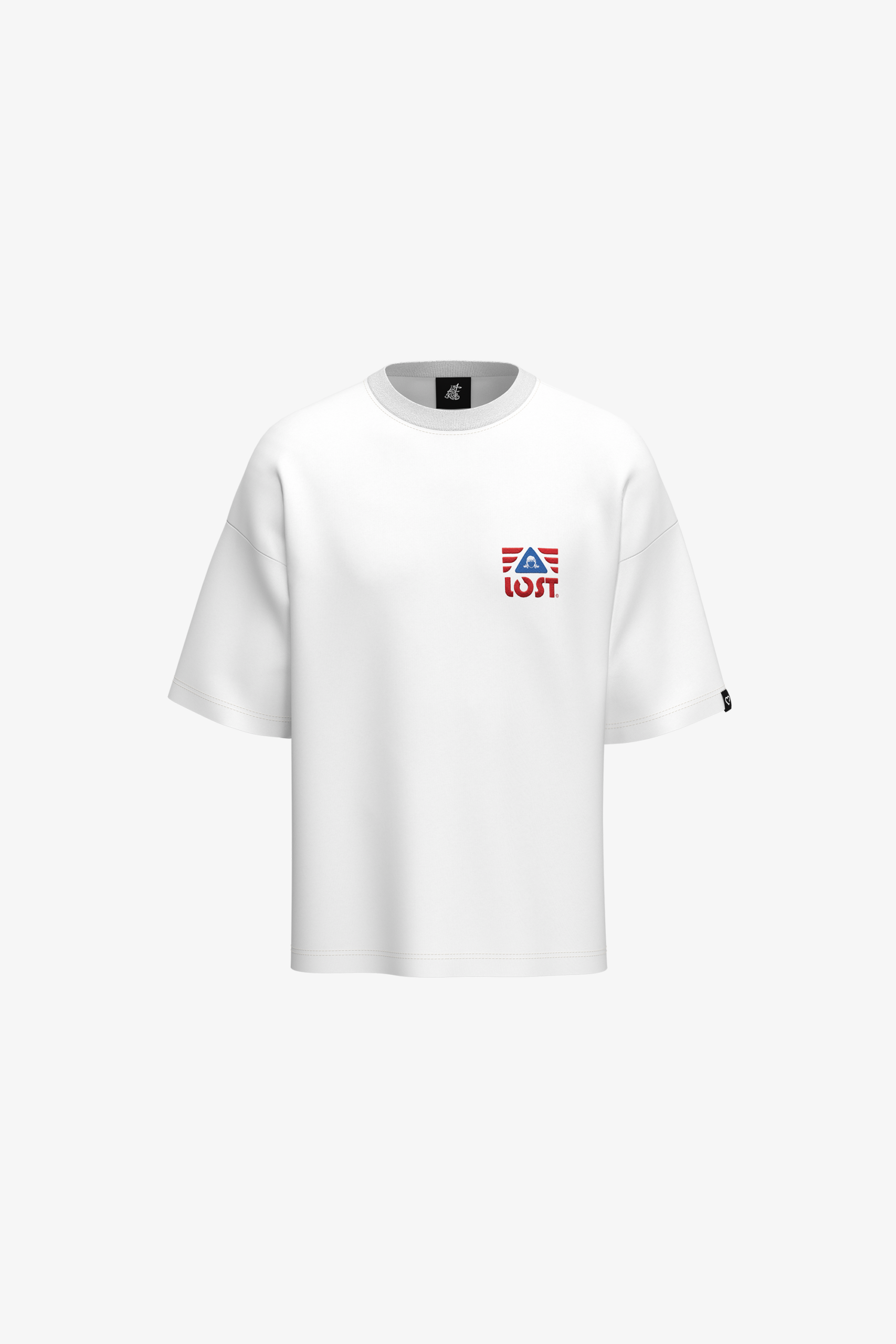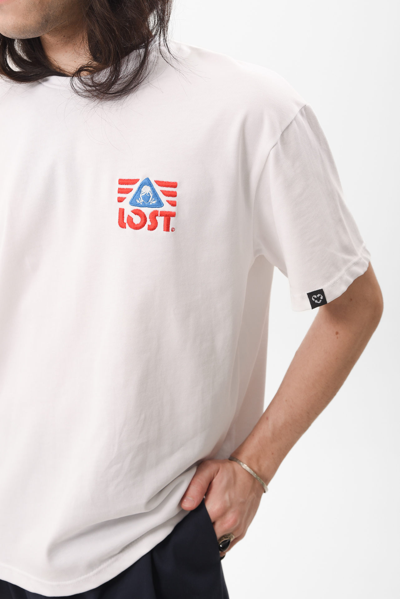 The KREOPOLEIΩN TEE begins softly a small Lost Kid embroidered on the front, whole, untouched, nurtured.
