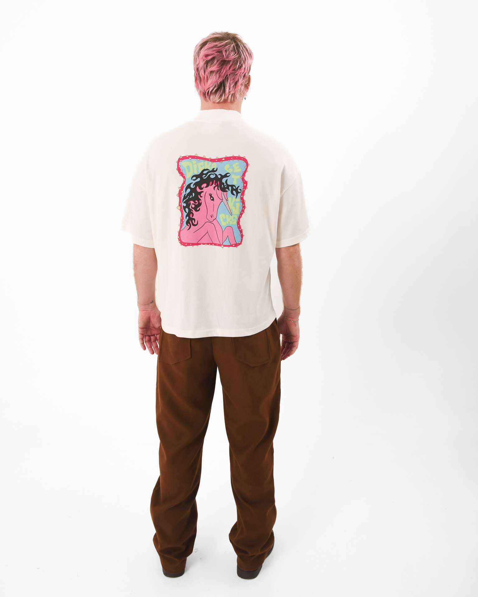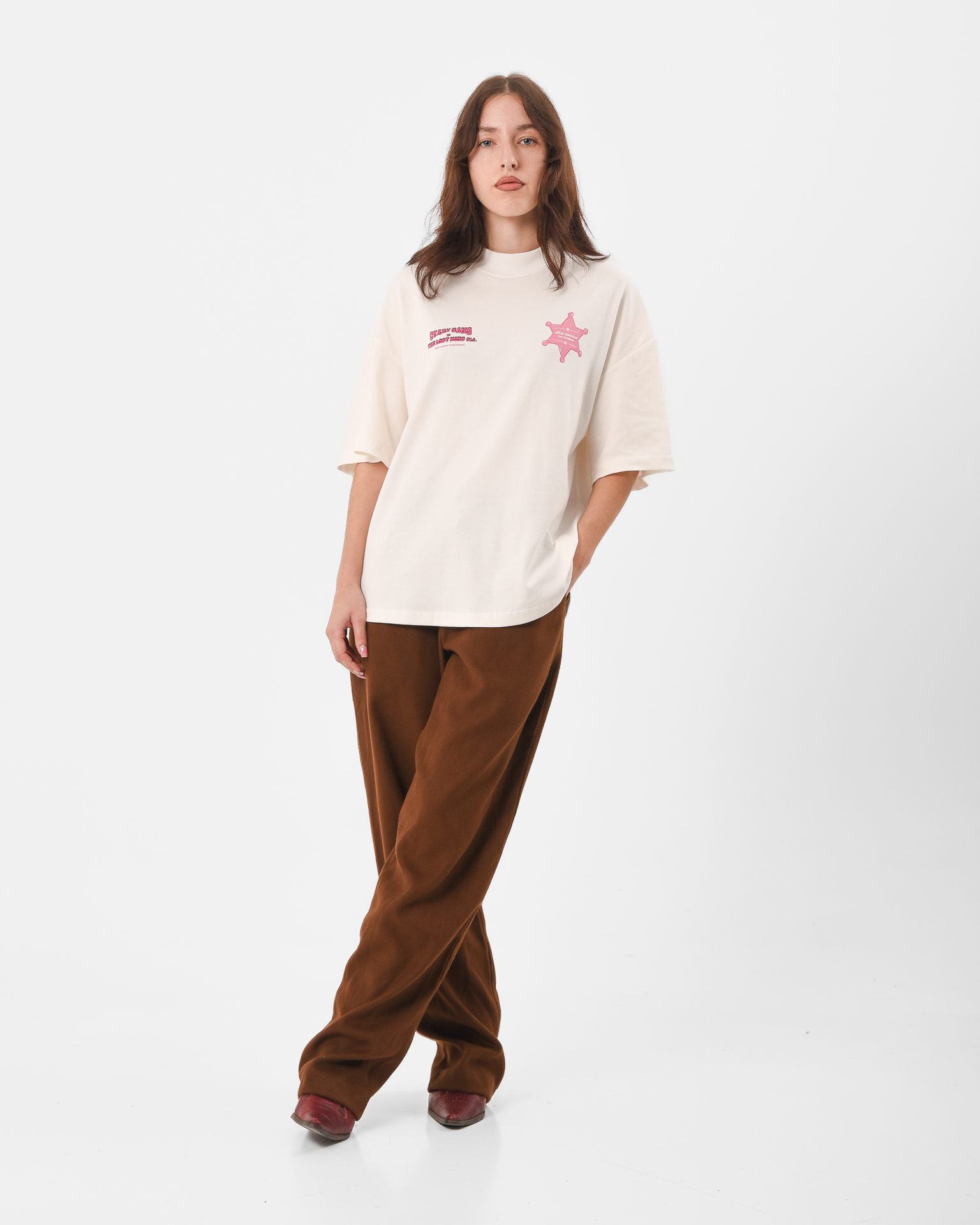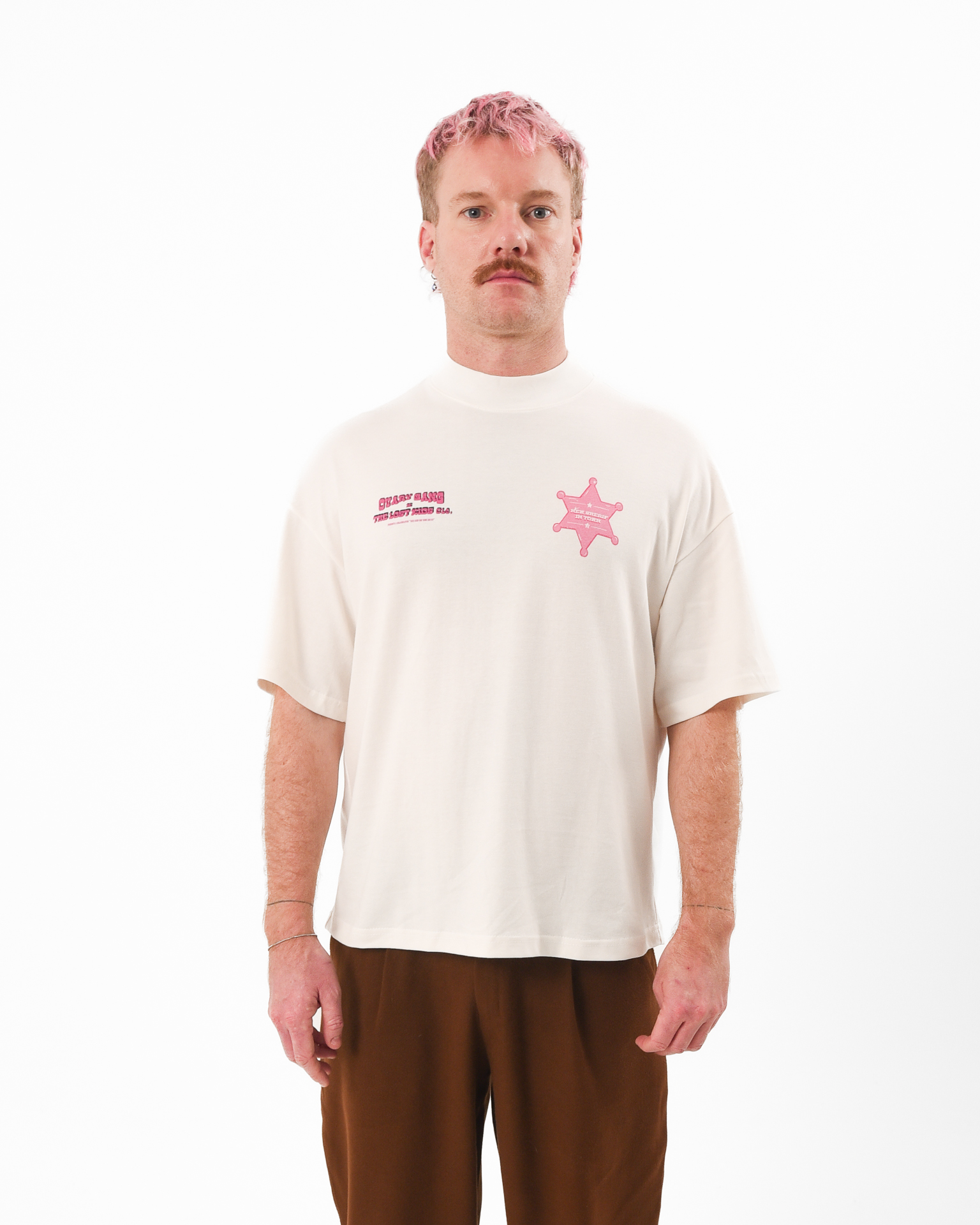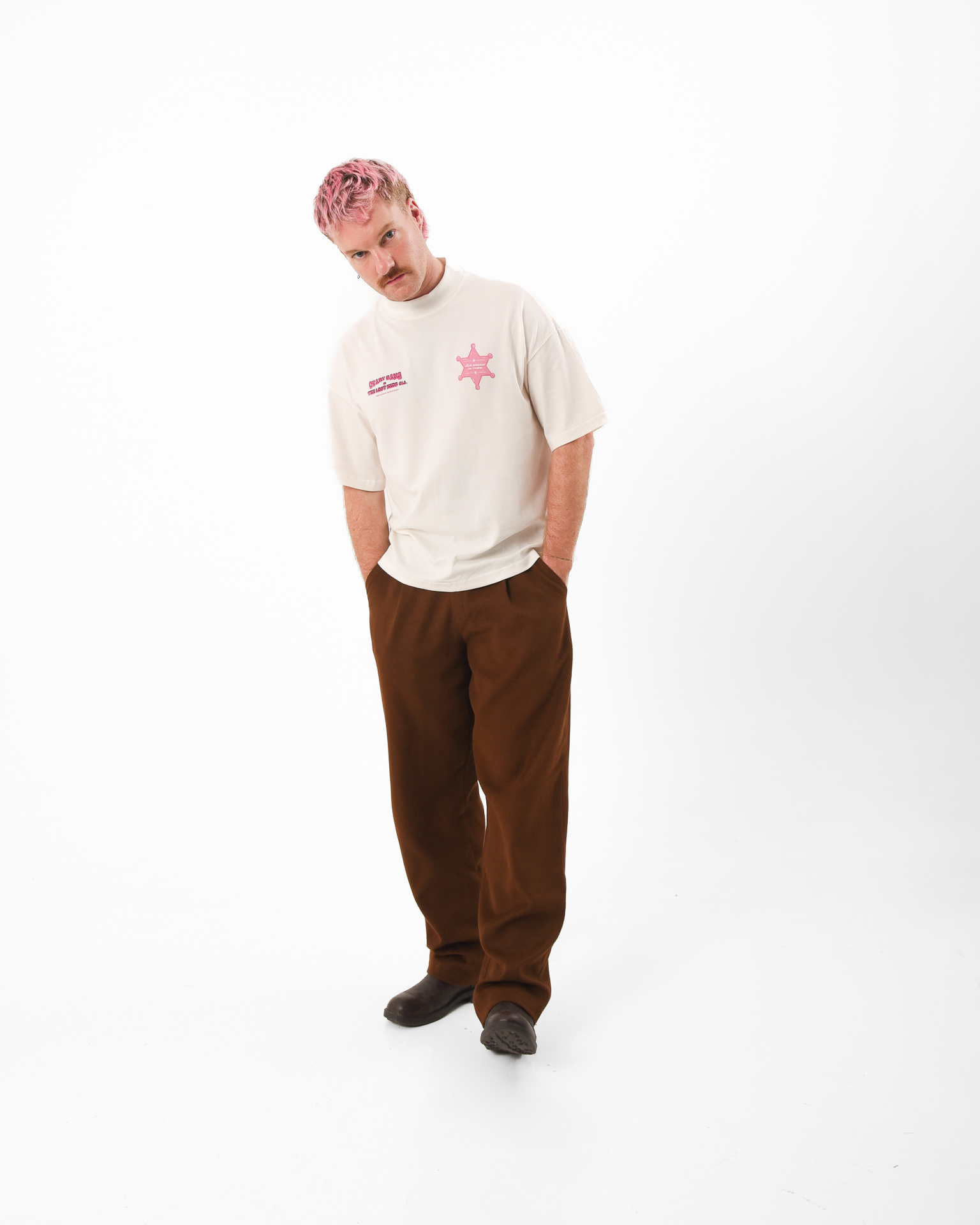 There’s a new law in town and it’s not playing nice. The New Sheriff Tee is an off-white statement piece with a bold front print declaring there is a “New Sheriff in Town” and a cheeky horse illustration on the back stamped with “Dicks Get Kicks.” Its Western rebellion meets street sarcasm, a nod to old-school cowgirls, ego checks, and standing your ground.